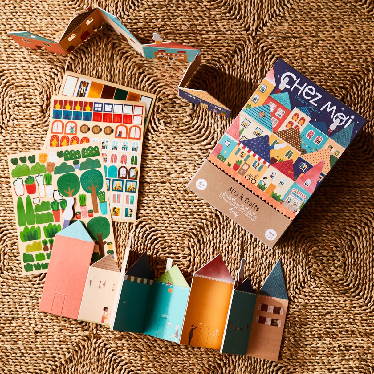 "Un juego artístico y reutilizable de Londji con casas y pegatinas. Estimula la creatividad, la motricidad fina y el juego simbólico desde los 4 años."