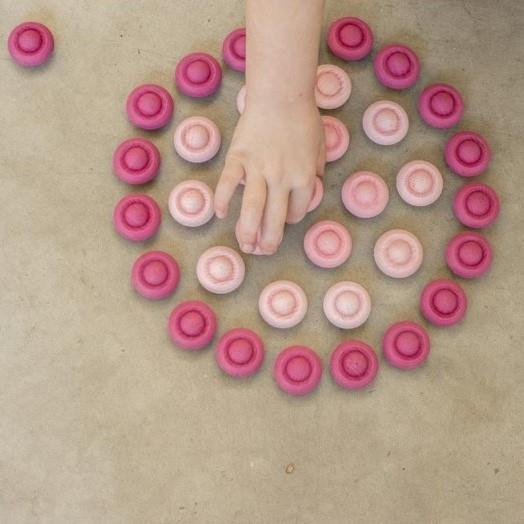 Crear con piezas sueltas desarrolla la creatividad y la imaginación potenciando la exploración cromática y de las simetrías. También podrán ser elementos valiosos en la recreación de juego con Mini Mundos. Las piezas para Mandala de Grapat, son un precioso material para explorar y crear. Fabricado con madera certificada y teñida con tintes atóxicos. Un juguete ecológico de gran calidad e impresionante potencial lúdico. Calidad Grapat. Apto a partir de 3 años. Las piezas tienen una altura aprox. de 32mm. Contiene: 36 piezas de madera en tres tonalidades de rosa