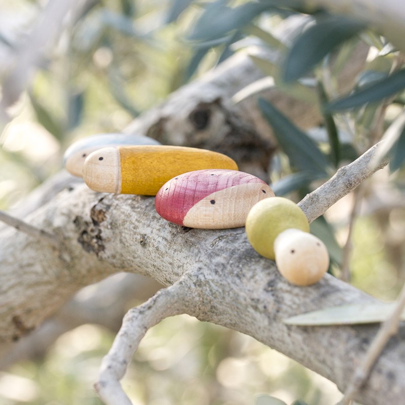 Esta familia de Insectos de Grapat permite a los niños crear historias y Mini Mundos. No hay instrucciones ni normas. Los elementos no tienen una forma del todo definida, y esto permite convertir las piezas en lo que niño necesita para generar su propia propuesta de juego y aventura. 6 mariquitas 40 mm ø, 6 babosas 52 mm largo, 6 hormigas 44 mm largo.