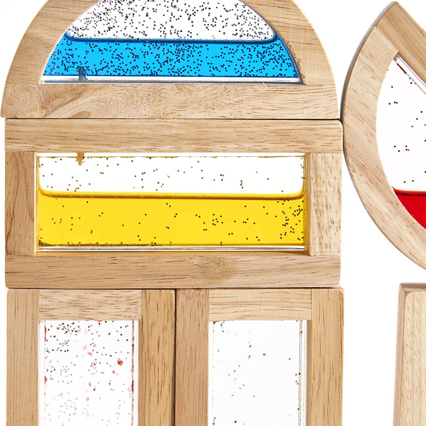 Una gran incorporación a nuestra familia de los juegos con bloques sensoriales. 8 piezas robustas con marcos de madera lisos y ventanas de acrílico que deja ver el agua de colores y brillantes destellos de purpurina. Contenido de la caja: Ocho bloques (4 rectángulos y 4 formas media luna). Características ventana de Plexi e interior con líquido de color y purpurina. Apto a partir de 2 años.