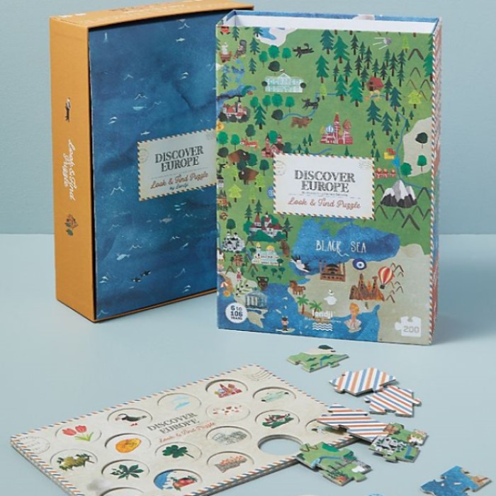 Discover Europe de Londji. Un continente tan diverso esconde muchos secretos, pero para poder descubrirlos deberás primero deberás resolver el puzzle. ¿Ya? pues ahora toca jugar con el Look & Find (busca y encuentra) que se incluye. ¿sabrás dónde está El Coliseo? ¿Y Sagrada Familia? Estos y muchos otros elementos tendrás que buscarlos en los países que conforman Europa. ¿Los encontrarás todos?. Un puzzle de Europa con una preciosa ilustración y 200 piezas para montar. Se incluyen 34 fichas de observación para complementar el juego. Los rompecabezas desarrollan la agudeza y la memoria visual. Además favorece la concentración y la visión espacial. Tamaño del puzzle una vez armado 67 x 48 cm. Apto a partir de 6 años.