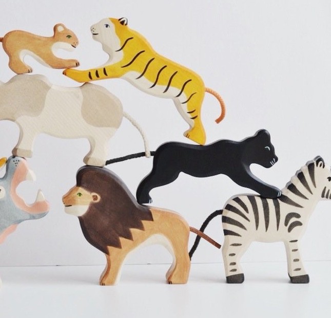 Entra en el maravilloso y artesanal mundo Holztiger, donde cada figura es única como el niñ@ que juega con ellas. Las piezas de Holztiger basadas en el modelo de juguetes Waldorf son ecológicos, hechos completamente a mano en Europa con madera maciza de abedul y arce de bosques certificados y pintados con tintes solubles al agua. La calidad de Holztiger garantiza su uso durante muchos años en un cuarto de juegos y la belleza del acabado inspirará la imaginación de tu peque. Estas figuras sencillas de madera, son populares en la Pedagogía Waldorf porque favorecen en l@s niñ@s dar vida a los personajes empleando su imaginación. De este modo, l@s niñ@s podrán recrear sus propias experiencias y sentimientos sobre el mudo que les rodea dentro de su universo de juego. Holztiger y sus figuras, serán sin duda un gran aliado en el desarrollo de la fantasía, la creatividad y la imaginación. El niño experimenta la naturaleza de una manera lúdica con las figuras de juguete de madera de Holztiger mientras desarrolla una sensación de formas y colores estéticos. El juguete artesanal está hecho principalmente de madera de arce. Debido a su color claro y dureza, es un material natural ideal para el tallado y el juego. Holztiger ofrece al niño figuras de madera duraderas y atemporales que se convertirán en la base de su juego creativo, solo o en grupo.