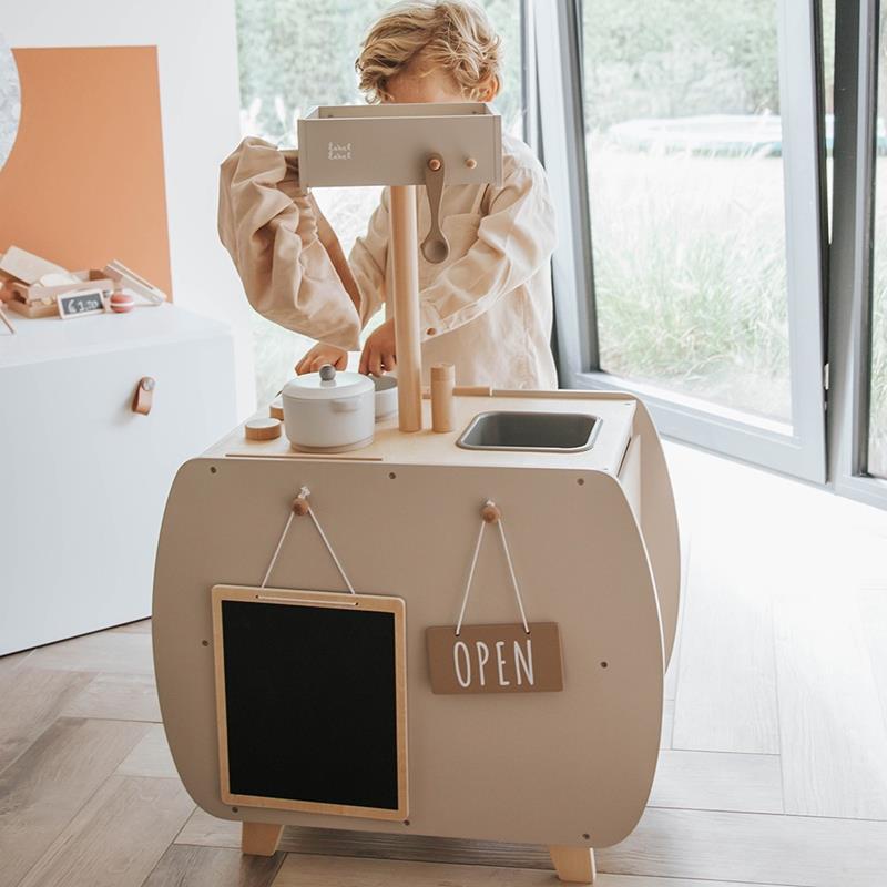 La Cocina Bistro Verde de Label Label es un juguete de madera que invita a los más pequeños a sumergirse en el juego simbólico y a recrear el universo cotidiano de la cocina. Con un diseño cuidado en tonos verde menta y acabados naturales, esta cocina combina estética nórdica y funcionalidad, convirtiéndose en un objeto decorativo y educativo al mismo tiempo.