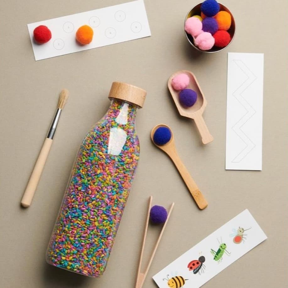 Botella sensorial ¡Para tocar! Lo que lees, porque eso es exactamente es Rice Wow! de Petit Boum. Una nueva dimensión de botella sensorial para explorar, crear e imaginar con la Touch Bottle más grande que encontrarás.