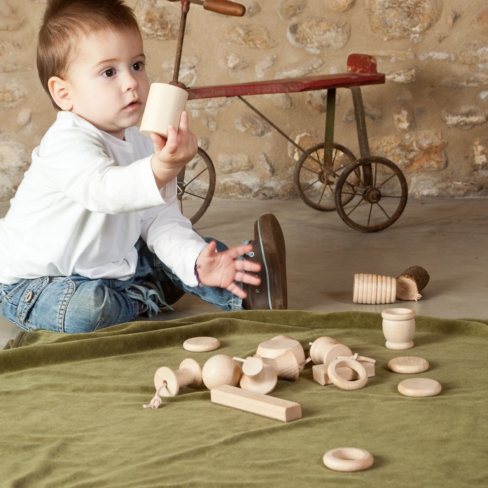 Una verdadera forma de estimular la curiosidad, material cuidadosamente trabajado y escogido para fomentar la investigación y la curiosidad de tu bebé. Incluye 20 elementos de madera natural tratada con ceras naturales. Este juego se compone de diferentes elementos de madera pensados para ser incluidos dentro de la cesta de los tesoros. La cesta es un tipo de propuesta lógica-matemática, basada en el juego sensorial y de descubrimiento, uno de los primeros que realizan los niños. El juego de elementos para la cesta de Grapat es una parte de entre todos los materiales que se pueden incluir, atendiendo a la necesidad de poner al alcance de los niños elementos de metal, ropa, naturales, vidrio, etc.