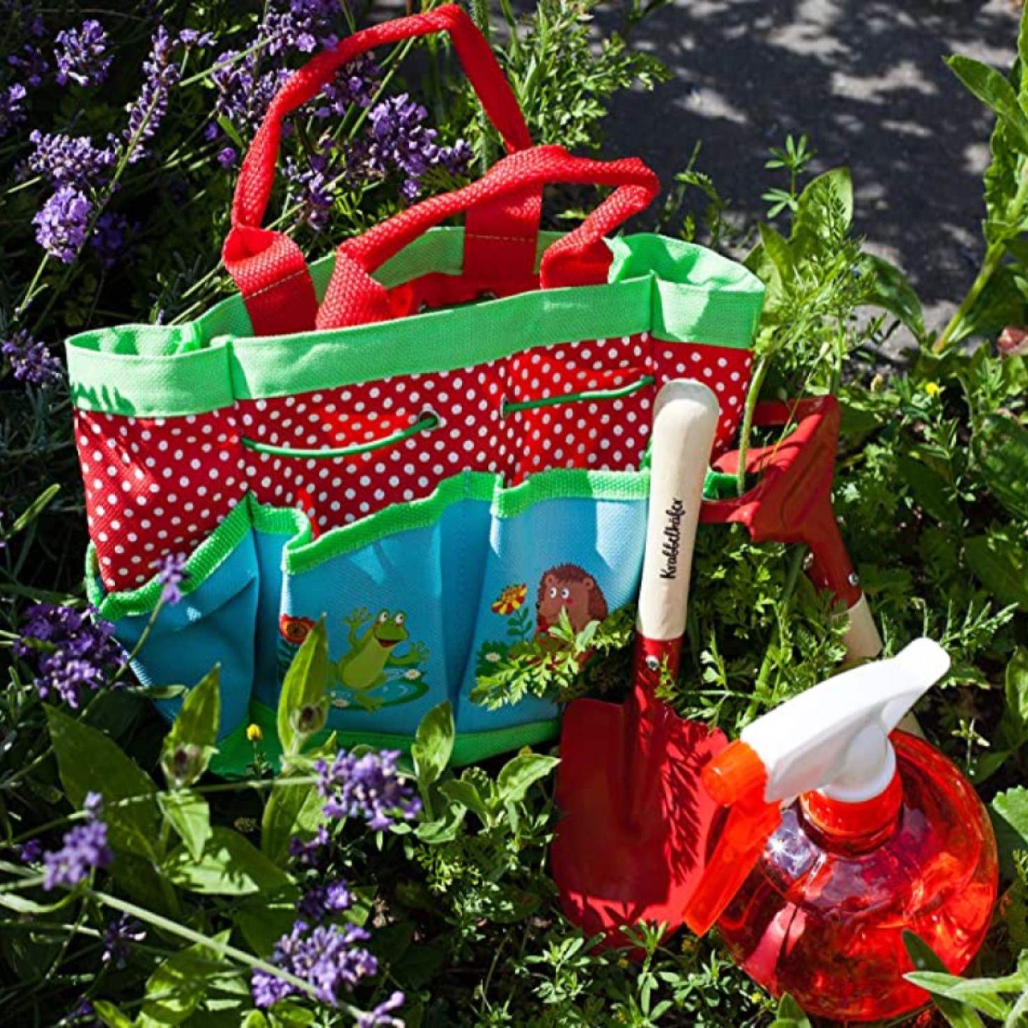 Bolsa de jardín para niños Moses Bichos, es un juego completo con rastrillo, pala y botella de spray para pequeños ayudantes de jardín y amantes de la naturaleza, que incluye un monísimo bolso de transporte. La bolsa de jardín Bichos está diseñado y pensado para lxs pequeñxs jardinerxs, idealmente equipados para explorar su propio jardín y ayudar a los grandes en las tareas de jardinería.