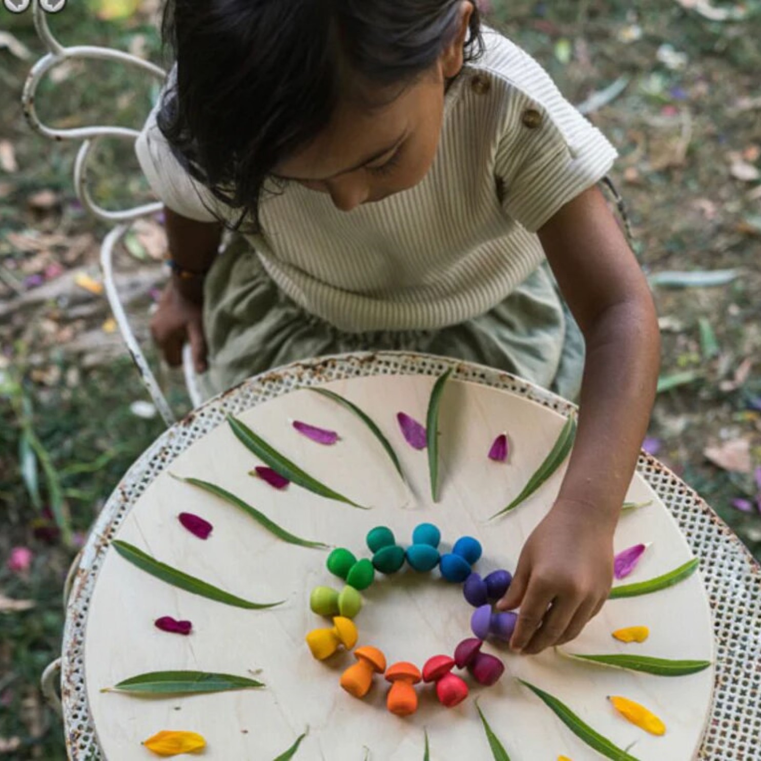Crear con piezas sueltas desarrolla la creatividad y la imaginación potenciando la exploración cromática y de las simetrías. También podrán ser elementos valiosos en la recreación de juego con Mini Mundos. Las piezas de 36 Setas Arcoíris para Mándala de Grapat, son un precioso material para explorar y crear. Fabricado con madera certificada y teñida con tintes atóxicos. Un juguete ecológico de gran calidad e impresionante potencial lúdico. Calidad Grapat. Apto a partir de 3 años. Las piezas tienen una altura aprox. de 32mm. Contiene: 36 piezas de madera en 12 tonalidades, perfecto para complementar con el Arcoíris de 12 arcos de Grimms. Apto a partir de 3 años.
