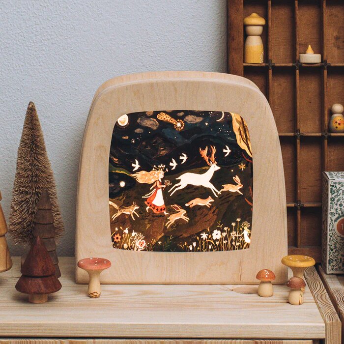 "Un regalo delicado, simplemente hermoso que redundará en el amor y la calma. Las láminas bellamente recreadas a partir de acuarelas o cuadros de lana de artistas reconocidos, permite no sólo una iluminación cálida y reconfortante sino también un momento de contar historias. Perfecta para una mesa de estación, para el aula o para la habitación. Un regalo de amor para toda la familia."