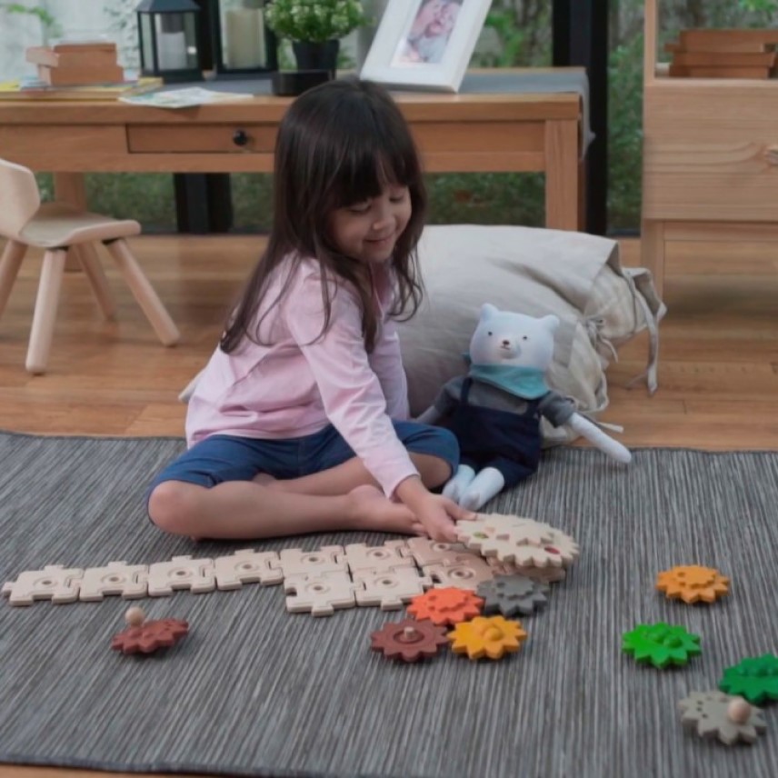 Este maravilloso juego se compone de 22 piezas de madera que encajan como un puzzle para crear la base sobre la cual hacer girar los engranajes. Descubrir, intuir, imaginar y aprender con este juego causa-efecto que hará las delicias de l@s peques más curios@s!. Fabricado con Planwood, es un juguete muy creativo, original y muy sostenible. Tintes naturales y atóxicos para resguardar a niñ@s y al planeta. Plantoys revoluciona el juguete con esta chulada que desarrolla la motricidad y favorece la imaginación. Apto a partir de 2 años.