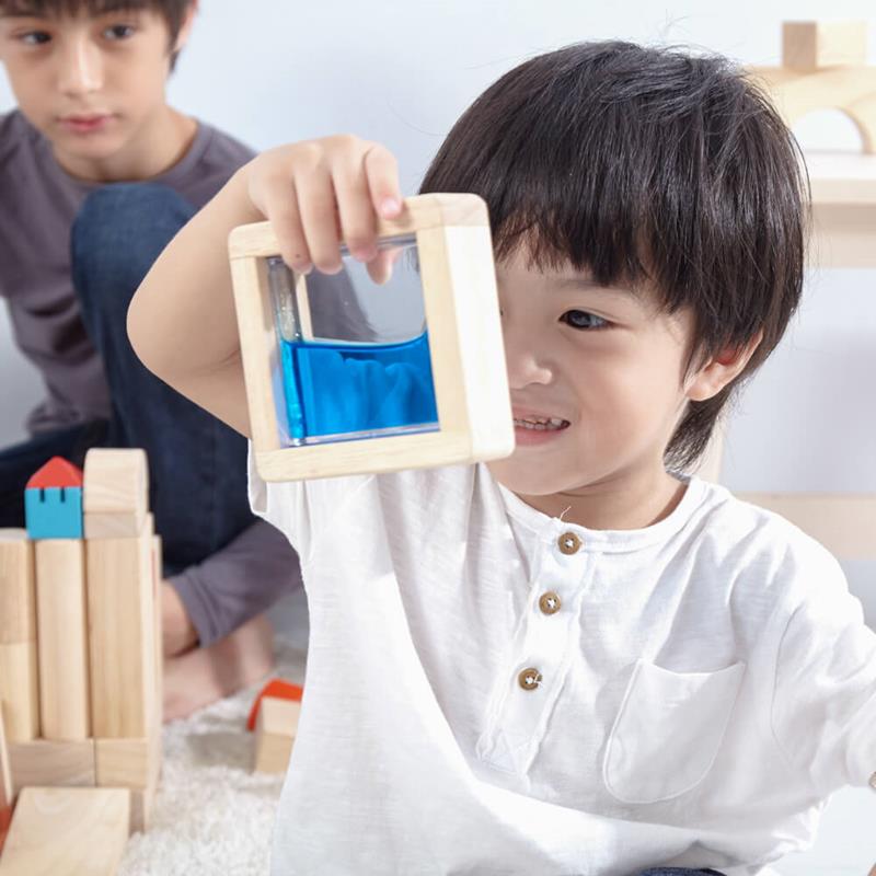 Estos originales bloques de madera llevan dentro agua coloreada que encantará a los peques al observar las diferentes formas que adquiere el líquido que contiene los colores cuando se ponen en movimiento los bloques. Añade emoción al típico juego de construcción con bloques. Además, si colocas uno delante de otro, tu peque podrá advertir los colores que resultan de las mezclas. Un precioso juguete educativo, ecológico y original fabricado en madera de bosques sostenibles. Calidad Plantoys. Apto a partir de 3 años.