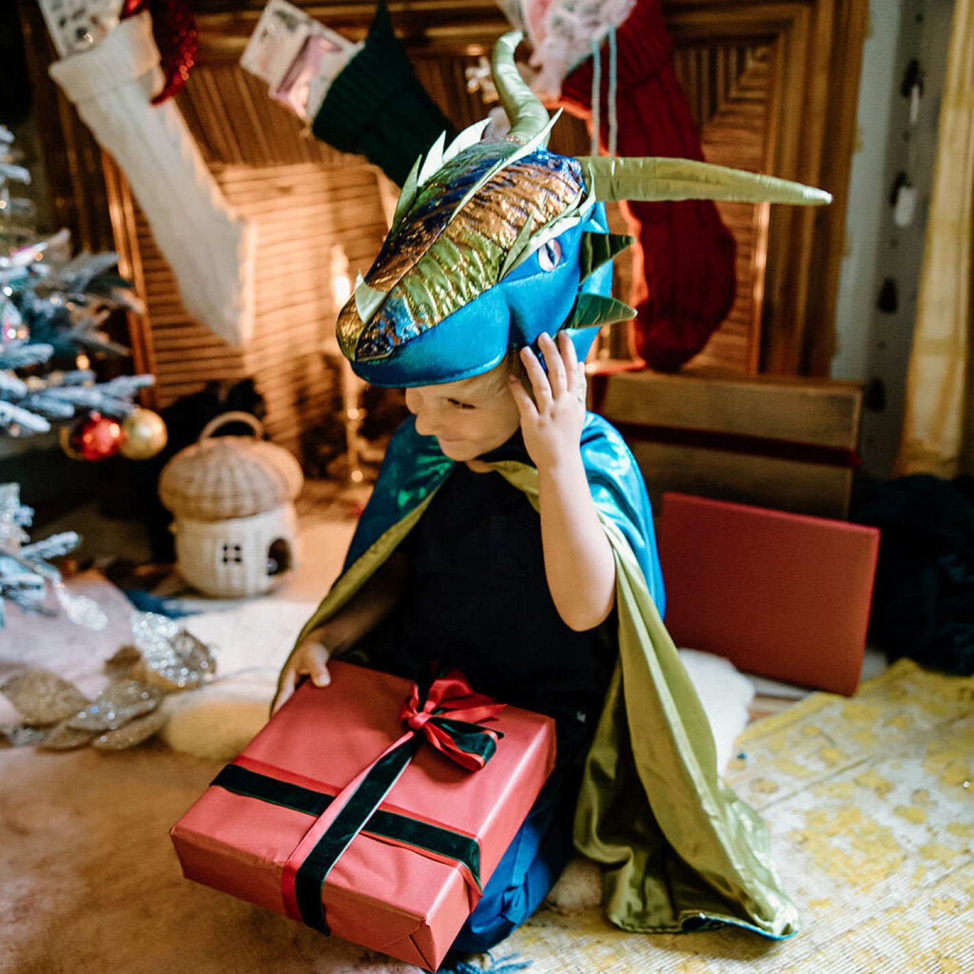 Transformarse en un dragón es una de las formas más mágicas de jugar. El disfraz Emerald Dragon de Great Pretenders invita a los niños y niñas a desplegar su imaginación con una capa brillante en tonos esmeralda, alas suaves y una capucha con cuernos que despiertan todo un mundo de aventuras fantásticas.