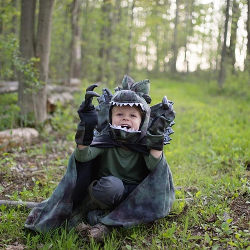 "Ideal para amantes de los dinosaurios y del juego sin guión. Añade la Capa Dilophosaurus de Great Pretenders a tu baúl de disfraces y deja que la imaginación viaje millones de años atrás."