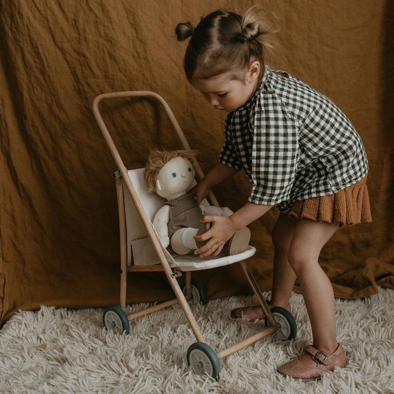 Llenos de amor y asombro ¡Así son los muñecos Dinkum de Olli Ella! Niños y niñas podrán acurrucarlos, vestirlos y peinarlos. Las muñecas Dinkum son articuladas, con brazos, piernas y una cabeza que se mueve; ¡también pueden sentarse e incluso pararse cuando usan sus zapatos!