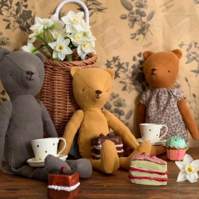La familia Teddy es una colección maravillosa de Maileg. Una suerte de evocación del oso de toda infancia pero en un tamaño manejable por las manos más pequeñas de la casa. El papá oso tiene un precioso color verde musgo y sus brazos se articulan para poder abrazar. Relleno con poliéster reciclado granulado de pellet le otorga peso y le permite sentarse. Por otra parte, el suave lino de su cuerpo lo hace especialmente adorable y fácil de lavar. Un juguete que hará las delicias de cualquier peque o recién nacid@, este oso es totalmente artesanal e ideal para jugar y/o decorar una habitación. De líneas muy sencillas, su acabado recuerda los juguetes de antaño con el sello de la tradición nórdica. Tierno y entrañable, seguro será un compañero de juegos ideal, se puede adquirir el resto de la familia Teddy y ropas por separado. Apto a partir de 0 años. Lavable a máquina hasta 30º.