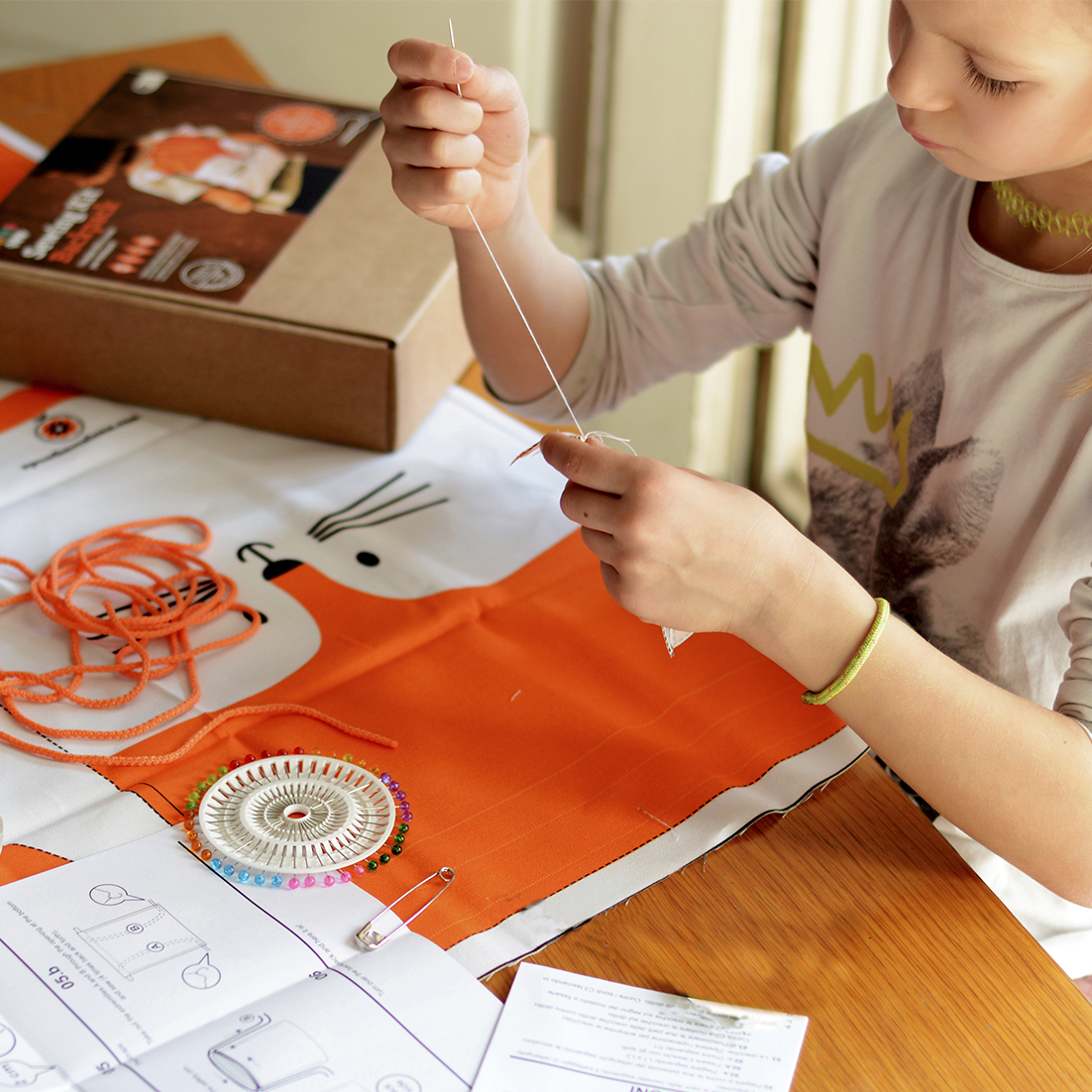 Con este set podrás hacerte una preciosa Mochila de zorro. Algodón con patrón impreso y listo para cortar y coser: Incluye la tela con la mochila impresa, bobina de hilo, cordones para hacer las asas, aguja de coser, imperdible y alfileres. costura. Desarrollar la motricidad fina y la coordinación mano-ojo mientras se divierten y fabrican una cómoda mochila para llevar sus tesoros, será un placer para l@s peques de casa. Apto a partir de 8 años. Kit completo para coser. Fabricado en España.