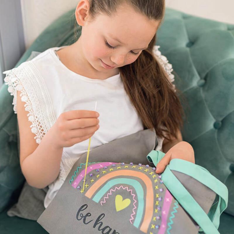 Con este set podrás bordarte un arcoíris y decorar así una preciosa Bolsa para llevarla dondequieras. Algodón con patrón impreso y listo para bordar y coser las cuentas en él: Incluye la bolsa de tela de algodón, 3 madejas de hilo para bordar en 3 colores (amarillo, rosa y turquesa), aguja de bordado y 22 cuentas de color morado listas para su costura en una de las franjas del arcoíris. Desarrollar la motricidad fina y la coordinación mano-ojo mientras se divierten y fabrican un bolso cómodo y a la moda para llevar sus tesoros, será un gusto delicioso para l@s peques de casa lucir el resultado de su trabajo y esfuerzo. Apto a partir de 8 años. Kit completo para coser.