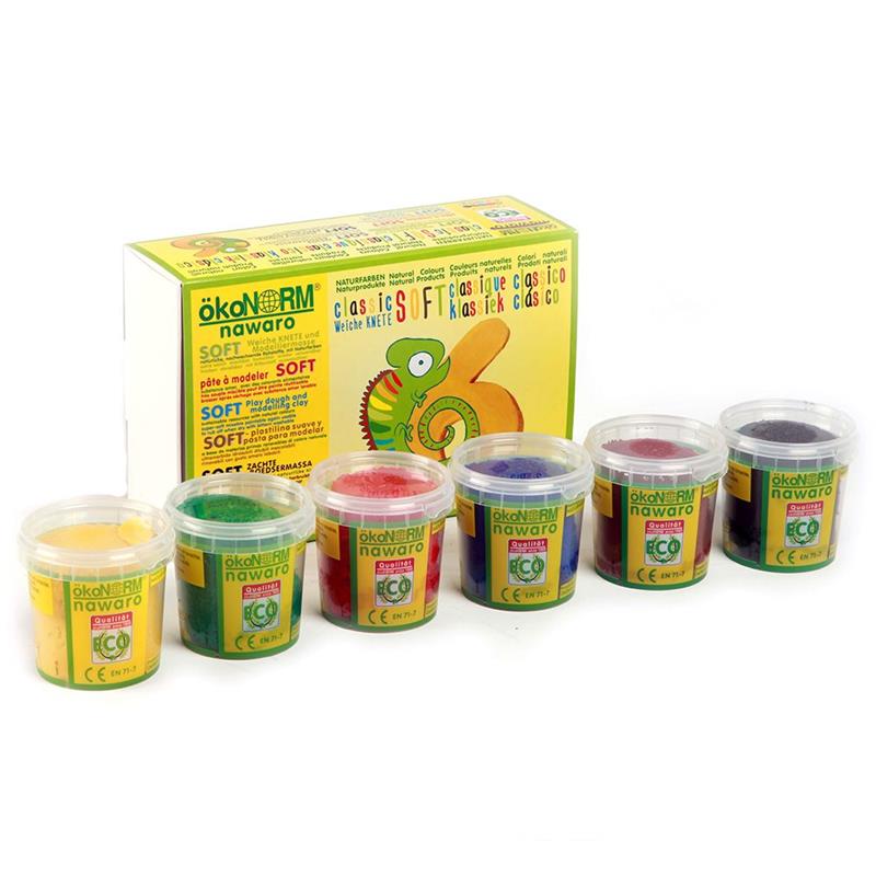 Seis colores diferentes: amarillo, verde, rojo, azul, marrón y negro. Cantidad: 6 frascos con 150 gramos en cada frasco. Un total de 900 gramos. Plastilina ecológica. Fabricada con materias primas naturales libres de gluten, con tintes lavables con agua (no necesitas jabón). Diviértete modelando con esta suave plastilina que no se seca fácilmente y cuida el planeta. Fabricado en Alemania. A partir de 3 años.