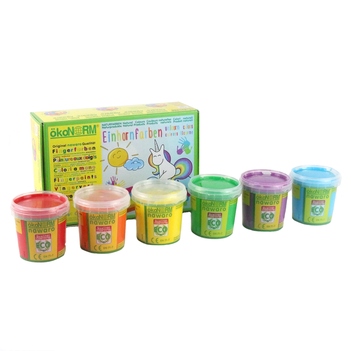Pinturas naturales brillantes conseguidas a partir de materias primas renovables. Para pintar con los dedos, pincel, tampones o con una esponja sobre papel, vidrio, madera u otras superficies. Fácil de aplicar. Se puede mezclar con otras pinturas del mismo conjunto. La consistencia cremosa evita el goteo. Excelente cobertura y brillo mejorado. La fórmula de ÖkoNorm es adecuado para diferentes técnicas de pintura preferidas por los niños, como pintar con los dedos, pintar con puntos, grabar, pintar con masilla, estampar, imprimir con corcho, patatas u hojas y muchas más. Las pinturas de dedos Nawaro están hechas para promover la creatividad de las mentes jóvenes y curiosas. Para uso en jardines de infantes, escuelas e instalaciones terapéuticas. Las pinturas de los dedos son solubles en agua y 100% lavables.