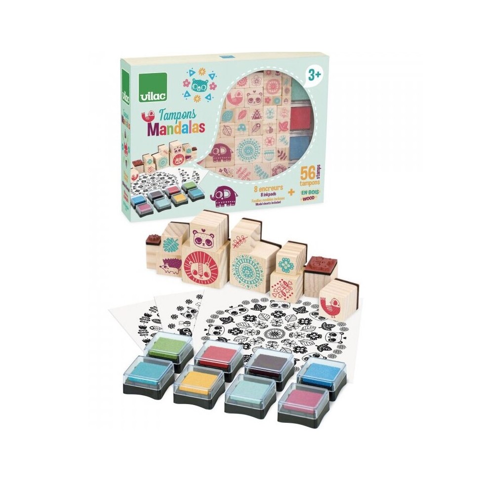 ¿Te gusta la estampación? ¡Este juego es para tí! Abre el cofre y comienza a crear tus propias mándalas con este set de tampones de madera. Incluye 56 tampones diferentes con infinidad de formas, como por ejemplo: animales, hojas, ramas y flores,... Y 8 almohadillas con tinta de colores (marrón, azul, rojo y amarillo) para poder mojar el tampón y comenzar a crear tus mándalas combinando infinitamente las partes a tu disposición. Perfecto para desarrollar la creatividad. Además después de estampar podrás colorearlo a tu gusto...