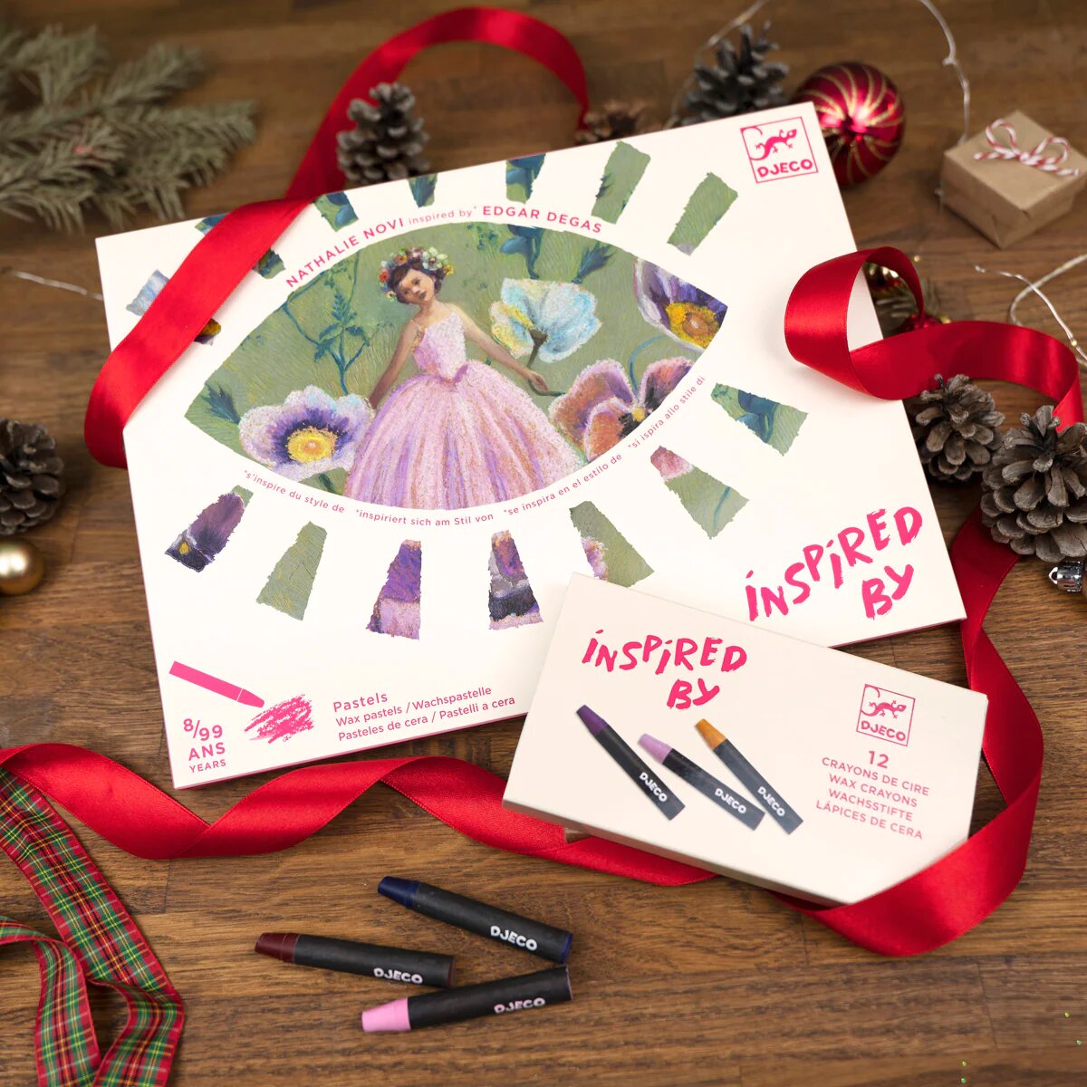 Este kit creativo incluye actividades de pintura con ilustraciones inspiradas en el estilo del gran maestro impresionista Edgar Degas. Los niños añaden colores trazo a trazo con los pasteles, superponiéndolos para revelar los secretos de estos personajes ligeros y románticos. El folleto explicativo da información sobre el artista y el movimiento artístico al que pertenece. ¡Una manera maravillosa de presentarle a su hijo el trabajo de Edgar Degas, el kit Ballerina Oil Pastel le brindará horas de entretenimiento artístico! Este kit de actividades en colores pastel al óleo con encantadoras ilustraciones inspiradas en el estilo del gran maestro impresionista Edgar Degas. Al usar los lápices grasos para superponer gradualmente diferentes colores, su hijo aprenderá a crear sombras y luces en los pliegues de las telas. El juego contiene lápices grasos de colores intensos y altamente pigmentados que se pueden utilizar como pasteles al óleo y pintura. El folleto explicativo da información sobre el artista y el movimiento artístico al que pertenece.