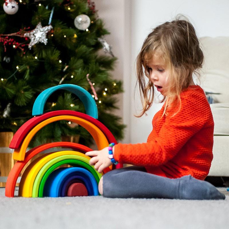 No hay nada imposible, si no nos crees te bastará mirar a a l@s niños jugar con este precioso y robusto Arco Iris de madera. Sus 12 piezas bastarán para ofrecerles múltiples posibilidades de juego. Déjalos libres frente al juego y sólo les bastará un par de minutos para empezar a dejar volar su imaginación. En breve será una casa para muñec@s, luego un circuito para los caballos y más tarde una cuna para muñecas. Este tipo de juguetes acompañarán a tus hijos un largo tiempo y lo irán redescubriendo con el tiempo.Grimm's es sinónimos de juguete ecológico y referencia en juguete Waldorf. Este juguete se complementa muy bien con los Nins de Grapat y con otros juegos de Grimm disponibles en nuestra web como la Pirámide Escalonada Arcoiris.