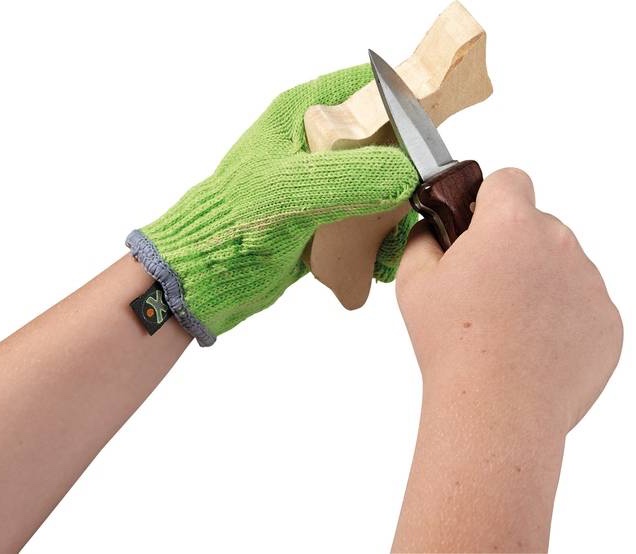 Protects thumb and forefinger when carving. Suitable for right and left hand users, with wrist hook and loop strap. Made of cotton thread and aramid yarn for best finger protection. Standard size. Includes 1 "dolphin" shaped blanks of lime wood, instruction leaflet. From 8 years & up.