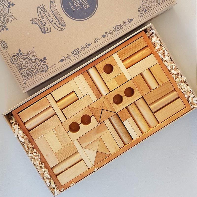 Our toys improve senses, they are soft to the touch, they catch your eye with natural colours and they smell of wood. With wooden blocks you can conjure the most amazing buildings. Freedom in creation stimulates inventiveness, awakes imagination. This blocks set comes 54 pieces in a box made of solid wood, to give joy when playing and please the eye as the original decorative element of the interior. Made from a selection of wood that comes from FSC certified suppliers. Natural , eco-certified pigments. Finished with beeswax and botanical oils, sanded perfectly smooth, soft to the touch. Free of harmful chemicals. Product eco. Made in the Beskidy Mountains, Poland. From 3 years & up.