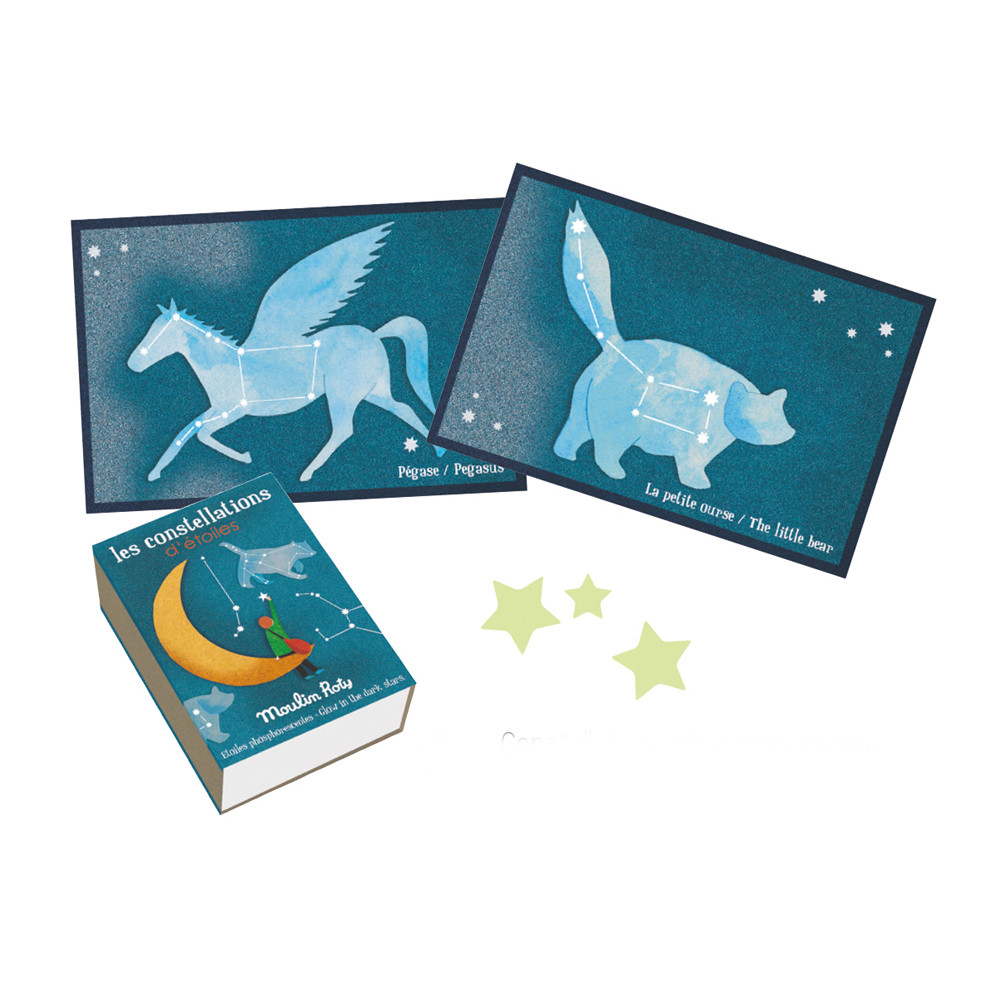 Create 10 different constellations with the Moulin Roty glow in the dark stars. Packaged in a sturdy-style matchbox, the set includes 30 glow in the dark stars, sticky adhesive pads and instructions. A great stocking filler and perfect for illuminating a bedroom or playroom ceiling. Part of the Moulin Roty 'Les Petites Merveilles' range.