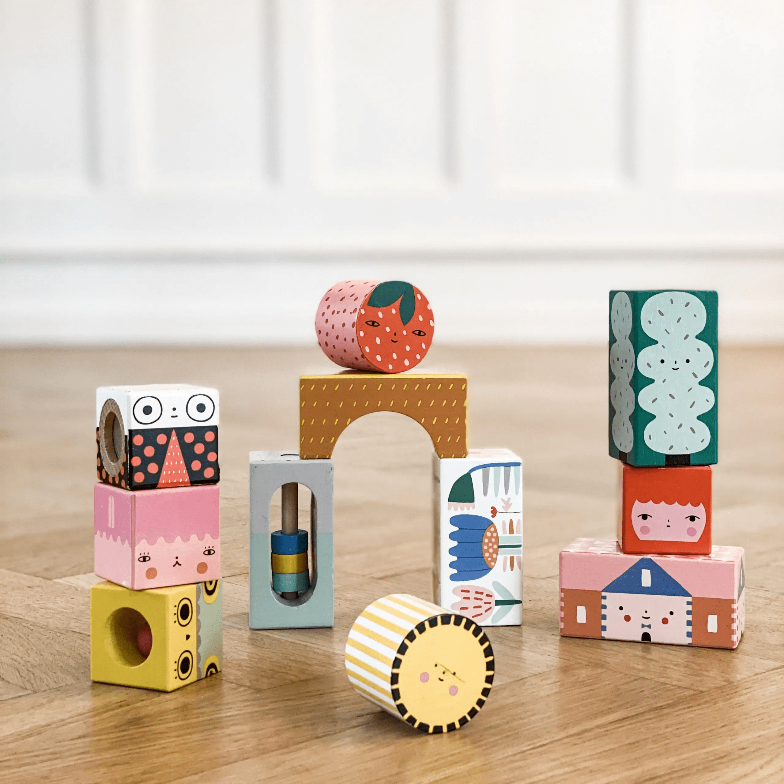 ¡Aprende a tocar y manipular mientras descubres tus sentidos con estos Bloques Sensoriales! Con estos 11 cubos de madera con sonidos y efectos ópticos y texturas ilustrados por Suzy Ultman para la marca francesa Vilac. Con estos divertidos cubos cuadrados y cilíndricos podrás jugar o realizar construcciones con casitas, flores y animales de acuerdo a tu imaginación. Niños y niñas estimularán su sentido de la investigación y curiosidad manipulando, mientras escuchan los sonidos o descubren los efectos visuales con estos preciosos bloques de elementos de un jardín primaveral. frutas, hojas, insectos y flores entre otros. Ilustraciones adorables y de colores alegres, diseñados por Suzy Ultman. Aptos a partir de 18 meses.