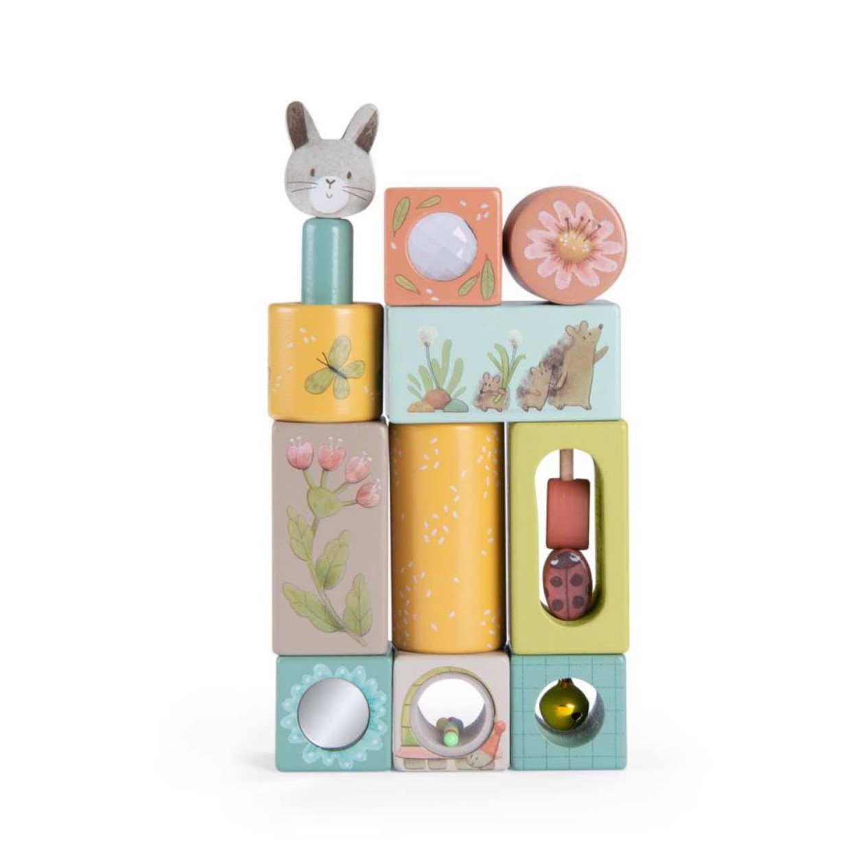 Descubre la magia de los bloques sensoriales "Trois Petits Lapins" de Moulin Roty, un set encantador diseñado para despertar la curiosidad y estimular los sentidos de los más pequeños. Este juguete, ideal para niños y niñas a partir de 1 año, combina estética y funcionalidad en piezas cuidadosamente elaboradas en madera y materiales seguros, perfectos para manos pequeñas.