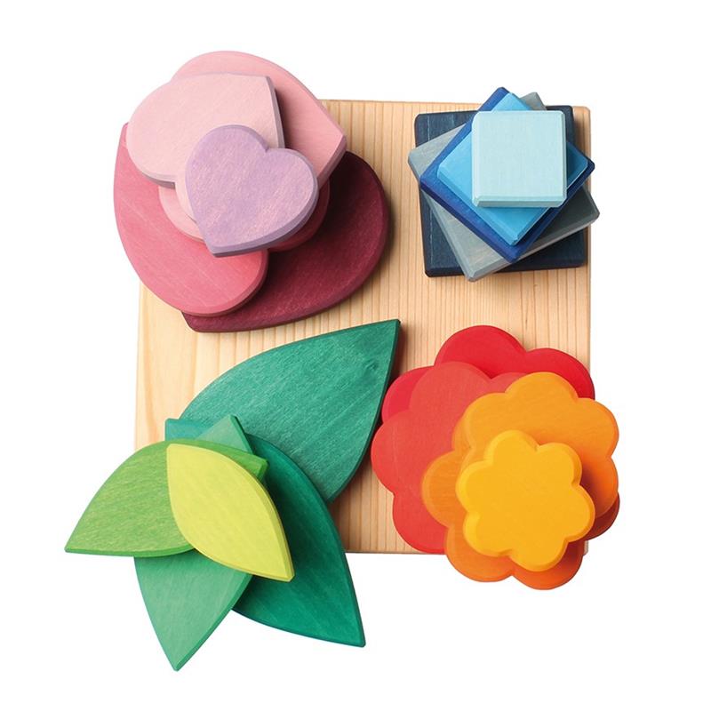 Handmade in Germany, 5 levels each shape to create a collection of variable shapes, great dexterity toy, Ages 1+, Natural, child safe, non-toxic finishes.