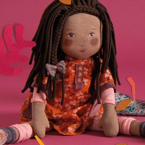 Esta nueva colección de muñecas diseñada e ilustrada por Cécile Blinderman, habla con poesía y encanto de un universo romántico.Entrañables y refinadas, acompañan a las/os niñas/os para el juego. A la ya conocida familia de muñecas de trapo, se une CAMELIA, su maravillosa tez morena y su lindo vestidoen tonos tierra nos invitan a vestirla, pasearla y mimarla, Iris tiene el sello de Les Rosalies, infinita delicadeza, rostros dulces ilustrados e impresos, con mofletes rosados y larga melena castaña oscura de textil de punto tubular. Completamente fabricada a mano tiene el influjo mágico del juguete artesanal. Fabricada con mimo y cuidado viene en un coqueto bolso de algodón. Fabricado en Francia. Apto a partir de 1 año. Calidad Moulin Roty.