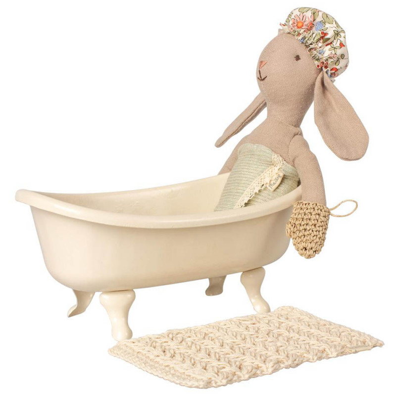 El set de bienestar Maileg incluye una toalla, un gorro de baño y una manopla de crin para el baño. El sombrero y el guante se ajustan a los conejitos de Maileg tamaño 1 y 2, a los ratones y a la familia Teddy. Un delicioso complemente para jugar con tus ratones y conejos pequeños de Maileg y para la casa de muñecas de Maileg. Apto a partir de 3 años.