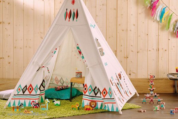 Precioso y práctico Tipi de algodón estampado y madera. Diseñado por la reconocida ilustradora y diseñadora gráfica Ingela P. Arrhenius, es un objeto único que dará un toque especial a cualquier estancia y se convertirá en el lugar favorito de tu peque. Apto a partir de 2 años.