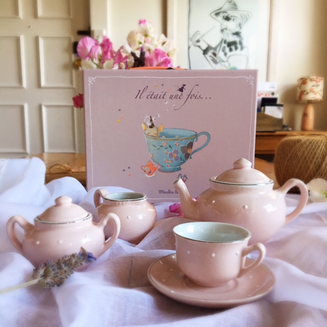 De la colección "Érase una vez" de Moulin Roty nos llega esta preciosa maleta con aire romántico y muy parisino. Un perfecto juego de té en cerámica con servicio para cuatro. En tonos rosa pastel y delicados puntitos blancos hará las delicias de los comensales. 4 tazas con sus platos, una tetera como las de casa su lechera y azucarera. Calidad inigualable Moulin Roty presentado en una bella y robusta maleta de cartoné reforzado y asa de metal. Apto a partir de 6 años.