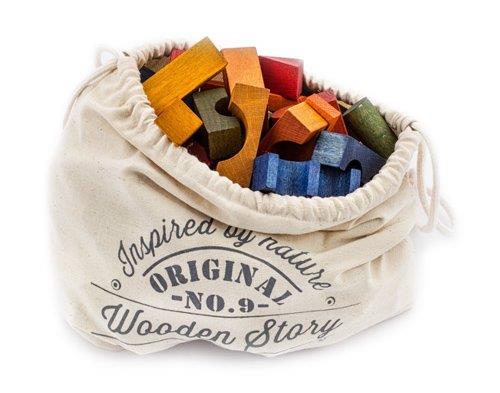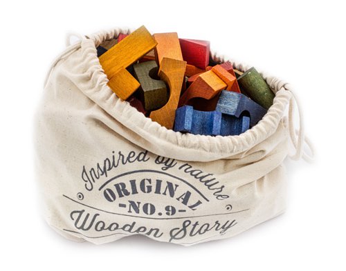 Our toys improve senses, they are soft to the touch, they catch your eye with natural colours and they smell of wood. With wooden blocks you can conjure the most amazing buildings. Freedom in creation stimulates inventiveness, awakes imagination. This blocks set comes in cotton sack, to give joy when playing and please the eye as the original decorative element of the interior. Made from a selection of wood that comes from FSC certified suppliers. Natural , eco-certified pigments. Finished with beeswax and botanical oils, sanded perfectly smooth, soft to the touch. Free of harmful chemicals. Product eco.Made in the Beskidy Mountains, Poland. From 3 years & up.