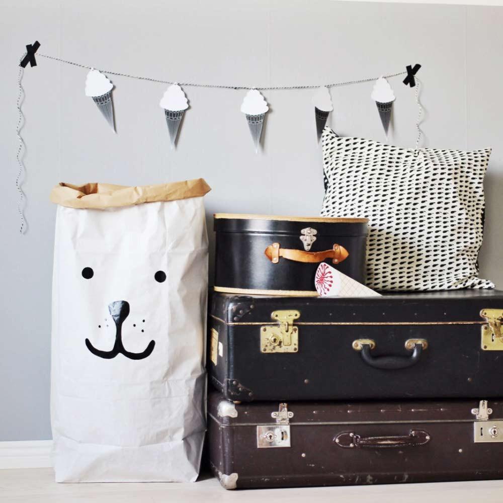 Esta robusta bolsa-juguetero está fabricada en papel, blanco y marrón. Muy duradera por su resistencia, podrás emplearla una y otra vez. Una vez la coloques y le des la forma que desees (doblando su borde superior y llenandola con lo que desees) la bolsa de papel Tellkiddo será un objeto de diseño en cualquier habitación de la casa (de los niños o no). Tellkiddo es 100% ecológico y está diseñado y fabricado a mano. Hecho en Suecia. This gorgeous toy sack is made of paper, white and brown. Durable and reusable many times over. Once placed and arranged into shape, the Tellkiddo's paper bag becomes a design object in any kids room. 100% ecological, designed and handmade in Sweden.
