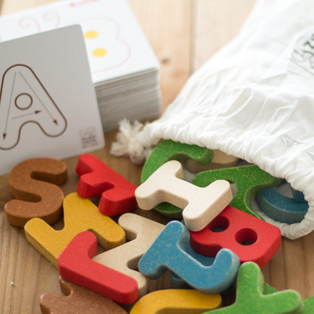 El set se compone de 26 letras del abecedario y 26 tarjetas base a dos caras. La primera cara tiene el dibujo de un animal relacionado con la letra (siguiendo el sistema Montessori) y en la otra cara las instrucciones y dirección para escribir cada letra. Las piezas de madera se encajan sobre la base de cartón. Ideal para el parendizaje del abecedario y para la enseñanza del inglés. Letras sólo en mayúsculas. Apto a partir de 3 años. Calidad Plantoys.
