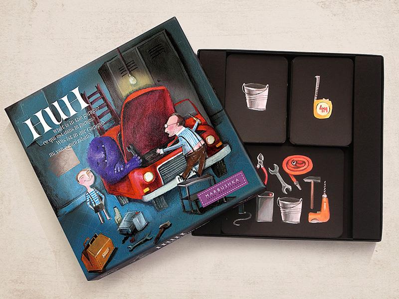 Un juego de memoria visual singular y divertido. Si conoces el HUH! ¿Qué hay en el armario?, este juego familiar también te encantará. Y es que si pensabas que los monstruos sólo se divierten escondiendo calcetines ¡estás equivocado! Los hay a los que le dan por las herramientas, o al menos eso es lo que nos recuerda este maravillosos juego de Marbushka. Tienen pruebas fidedignas de que hay un monstruo con el pelo morado al que le gusta la mecánica y que ama todo tipo de cachivaches y herramientas ¿dónde encontrarlo? Hurgando en los garajes, obviamente. La única prueba de su paso es el desorden que deja tras de sí. Es el responsable de que en ocasiones los adultos no puedan encontrar el destornillador, el martillo o las tuercas que habían ordenado el día anterior. ¿Puedes recordar lo que hay en tu garaje? ¿Y lo que no? Un divertido juego para ojos rápidos y memorias a prueba de retos a partir de 5 años. De 2 a 4 jugadores. Duración aproximada de la partida 15 min.