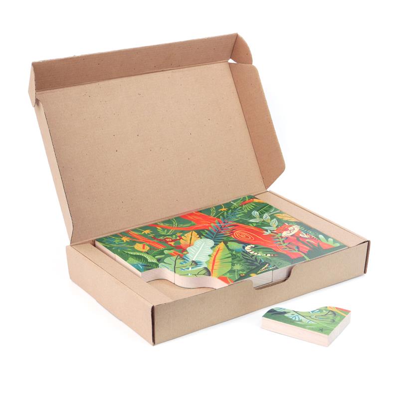 ¿Qué verás en la ilustración? Pues un arrecife de coral exquisito y de colores estimulantes ¿Y qué hay del otro lado? Por la otra cara de cada pieza se pueden ver fragmentos de plantas verdes. Pero sólo cuando los ensamblas, podrás admirar la imagen completa ¡Es una jungla misteriosa! En ella se escondieron varios animales exóticos y es tarea de cada niñx encontrarlos a todos. Lo mismo ocurre con el arrecife de coral. Los animales marinos acechan entre las plantas. Hacer el rompecabezas es beneficioso para el desarrollo saludable del niño y puede ser una introducción al aprendizaje de la escritura y la lectura. El juguete también ayuda a practicar la coordinación ojo-mano mejorando así la motricidad fina. Algunos elementos del rompecabezas no están pintados. La empresa Bajo se encarga de que cada juguete tenga un elemento de madera sin ninguna capa de pintura para que los niños conozcan, vean y sientan la estructura de la madera. El juguete está hecho de madera natural. En vista de eso, no debe entrar en contacto con el agua o de lo contrario el juguete puede resultar dañado.