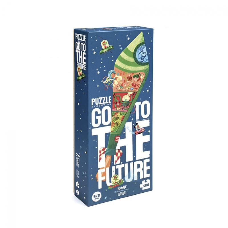 ¿Te has imaginado alguna vez cómo será la vida en el futuro? Londji y Sebastià Serra nos ayudan un poco. ¿Conviviremos con seres de otro planeta? o celebrarermos los cumpleaños en un cohete, quizás... Aún no lo sabemos, pero ¡podemos imaginarlo!. Este precioso puzzle de cartón reciclado y papel, delicadamente impreso y 100 piezas resistentes y duraderas nos ilustran un viaje al futuro en el que las fronteras con el espacio sideral tampoco existan. Presentado en una robusta caja de cartón y con piezas manejables y grandes nos ofrecen un puzzle armado de 32 x 85 cm, lo que lo hace ideal para trabajar en el suelo. Apto a partir de 5 años en adelante. Calidad y diseño Londji.