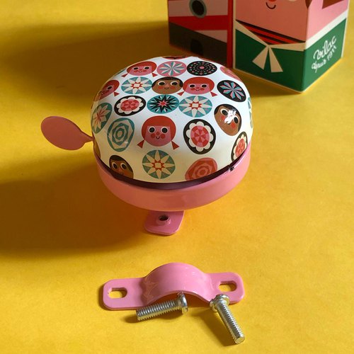 ¡Alegre! Así es esta bonita campana diseñada por Ingela P. Arrhenius para Vilac. Su vibrar y color alegrará cualquier bicicleta. Un timbre no sólo es necesario para la seguridad, también es el compañero ideal para cada recorrido en bicicleta. Disfruta de este, fabricado en metal y con un aire y sonido nostálgico. Instalación muy sencilla. NO ES UN JUGUETE.