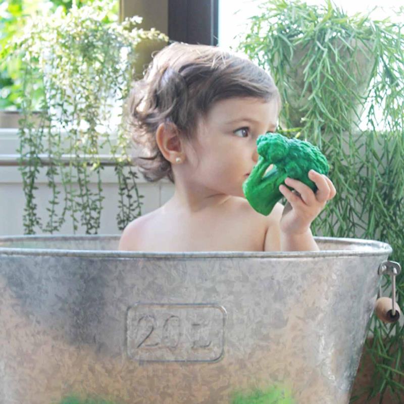 BRUCI THE BROCCOLI es un mordedor, juguete de baño y juguete sensorial para bebé. Hecho a mano con caucho 100% natural y pintado a mano con pigmentos alimentarios. Introduce a los más pequeños en hábitos saludables. Hecho con caucho 100% natural procedente de los árboles Hevea.
