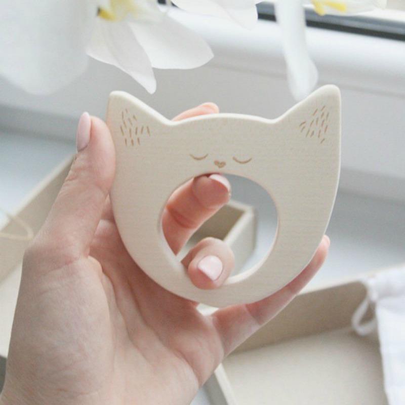 Mordedor ecológicos de madera para aliviar el dolor de tu bebé por la dentición. Un lindo gatito bostezando cuidará las encías de tu bebé, fabricado de forma natural con madera de tilo sin pigmentos y procedente de bosques certificados FSC. No contiene aceites derivados del petróleo, sólo cera de abeja. Su textura suave y delicada ha sido lograda a través del pulido a mano con lijas de arena libres de tóxicos y alergenos. Lo más natural para tu bebé. Completamente ecológico y hecho a mano. Presentado en un delicado saquito de algodón con caja de cartón reciclado bellamente impresa. Altísima calidad Wooden Story. Apto a partir de 0 meses.
