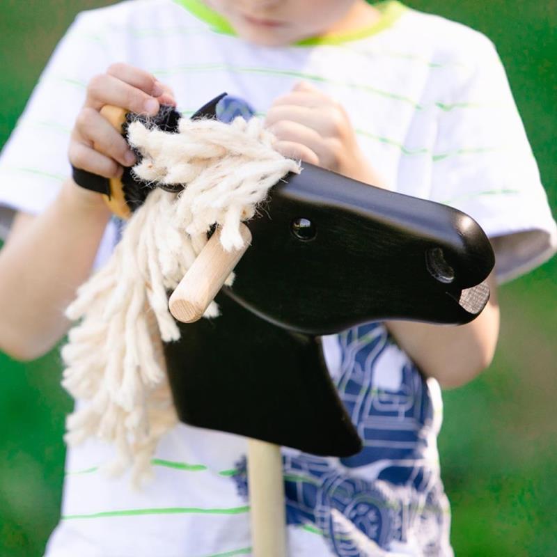 Precioso caballito de palo fabricado en madera maciza de haya, crines de lana y orejas en piel. Cabalgarlo y coger las riendas será la mar de divertido en este juguete de siempre y para siempre. El tope con ruedas facilita el desplazamiento en cualquier superficie. Apto para usarlo en el exterior. A partir de 3 años. ¡Este caballo de juguete hecho a mano de haya vaporizada puede soportar mucho! Su melena es de pura lana virgen. Además de ser divertido, promueve la destreza, el equilibrio y la fuerza de su hijo. Además, se entrenan las habilidades cognitivas. Todos los caballos de batalla están equipados con dos asas en la cabeza del caballo y dos rodillos en los extremos de sus palos. El cabestro no está incluido.