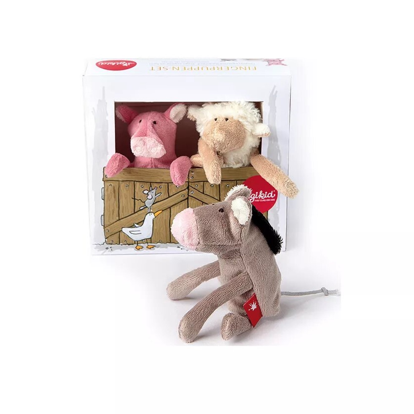 No hay un momento más divertido en el día que cuando los animales del Bosque de este set de títeres de dedo sale a escena. Decenas de historias para contar, un juego educativo e infinito ¿Qué les pasará hoy a estos animalitos? Cuenta cada vez un relato diferente y vive nuevas aventuras para escenificar y cautivar la atención de l@s niñ@s. Cerdo, oveja y burro formarán un gran equipo contigo y tu familia. Lavable a máquina hasta 30º. Apto a partir de 8 meses si juegan contigo o ideales para los peques más grandes cuando juegan solos.
