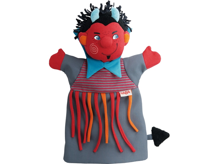 ¿Será bueno o malo?. Quizás en tu historia, este diablillo haga travesuras porque con esta divertida y original marioneta podrás contar la historia como tú quieras y harán las delicias de los pequeños titiriteros que con sus manitas darán vida y movimiento a este personaje. Marioneta de mano, fabricada en algodón y felpa de tacto sedoso. A partir de 1 año.