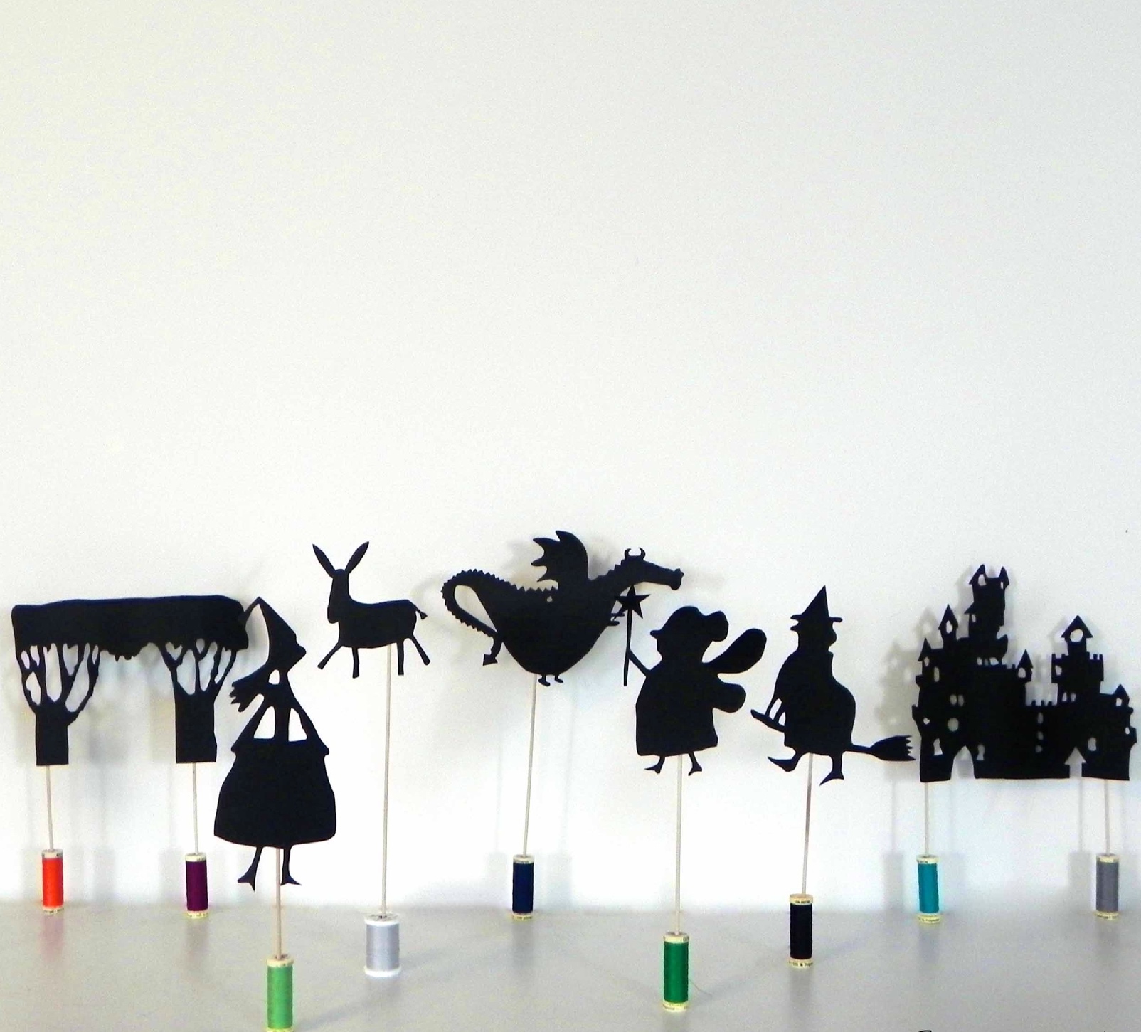Hace ya mucho tiempo, en un mundo lejano en el que los bosques y los dragones abundaban..." Deja volar tu imaginación y descubre el mágico mundo del teatro de sombras, 9 maravillosas figuras para hacer teatro y contar historias...de hadas, reyes, dragones y castillos!. A partir de 3 años.