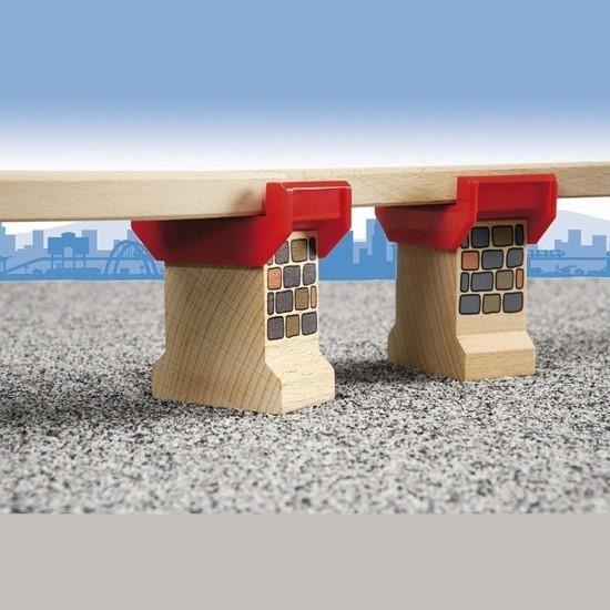 ¡Experimenta el juego de trenes a otro nivel! El espacio para nuevas vías de tren puede ser insuficiente en ciudades ajetreadas. Resuelve el problema con estos soportes apilables para elevar tu circuito de trenes con vías de madera. Construye un puente y un túnel en un nivel, apila otro en la parte superior y triplicarás la diversión!. Compatible con todo el Railway Brio System. Contiene 2 soportes. A partir de 3 años.