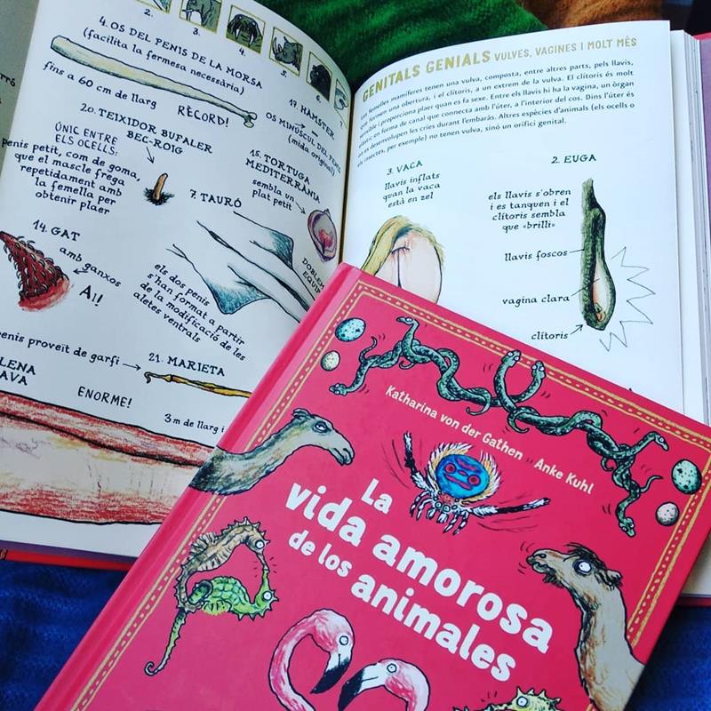Takatuka vuelve a la carga con un libro interesante, curioso, riguroso y por demás sorpredente. La pedagoga sexual Katharina von der Gathen conocida por su libro de sexología para niños "Cuéntamelo todo", aborda en este libro de manera prolija el tema de la sexualidad y la reproducción en el reino anima. Tres grandes bloques: los rituales de seducción y la época de celo, las formas de apareamiento, embarazo y parto, la crianza y las formas de vida familiar entre los animales. Toda esta detallada información se ve complementada con el trabajo estupendo de la ilustradora Anke Kuhl que, a modo de libro clásico de ciencia natural, pero con un toque comiquero y con una buena dosis de humor, nos deleita con unas ilustraciones pormenorizadas y unas espectaculares páginas desplegables.